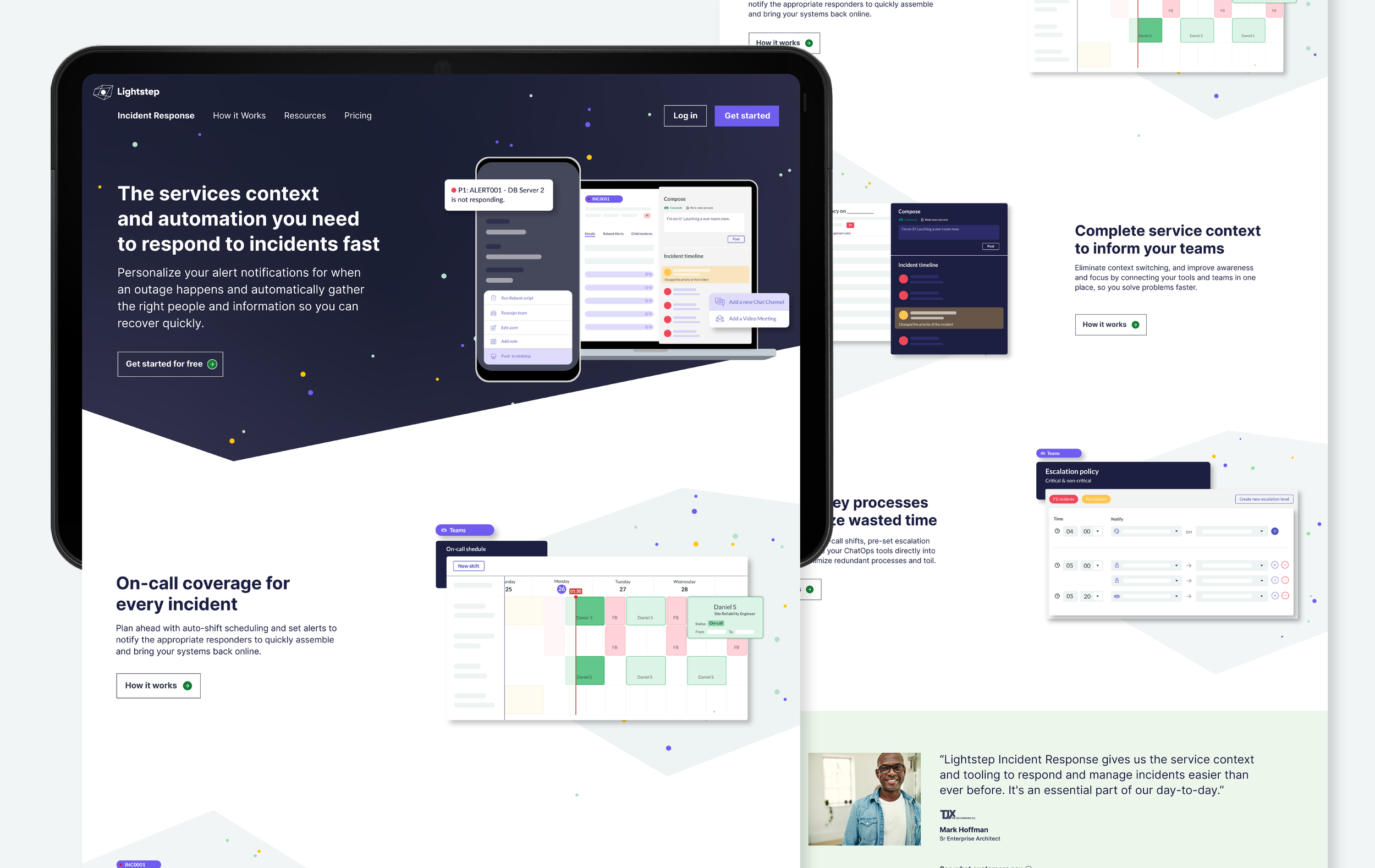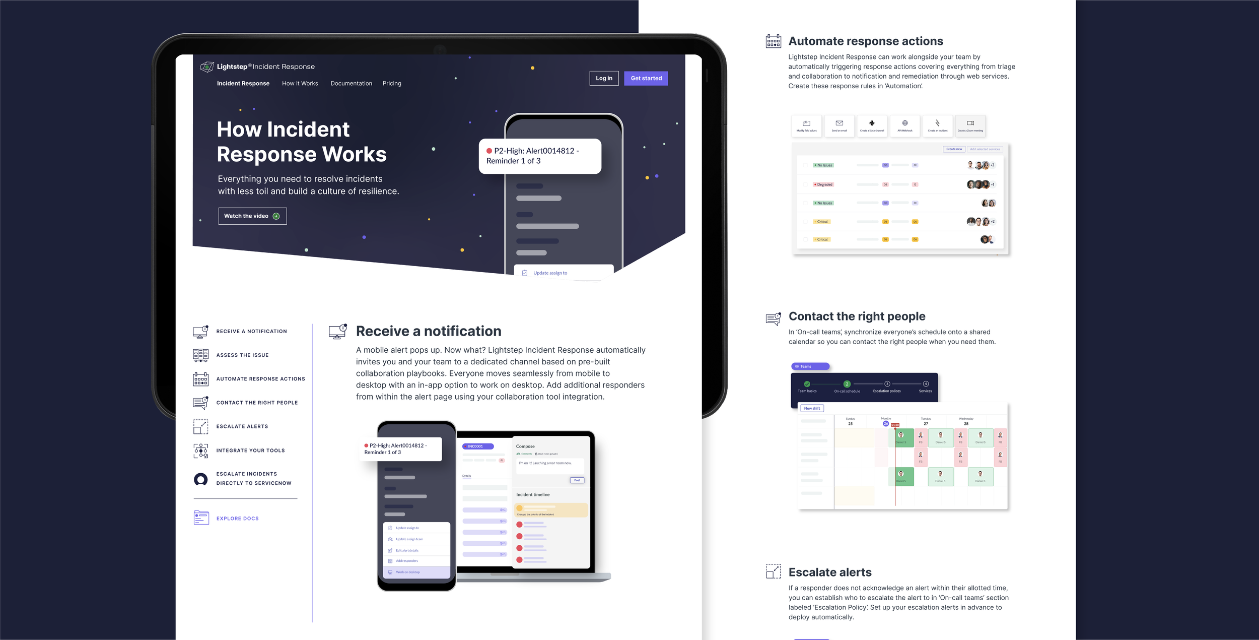 Developed site IA, copy, design, and lead flow for hybrid site with Incident Response product on Lighstep website.